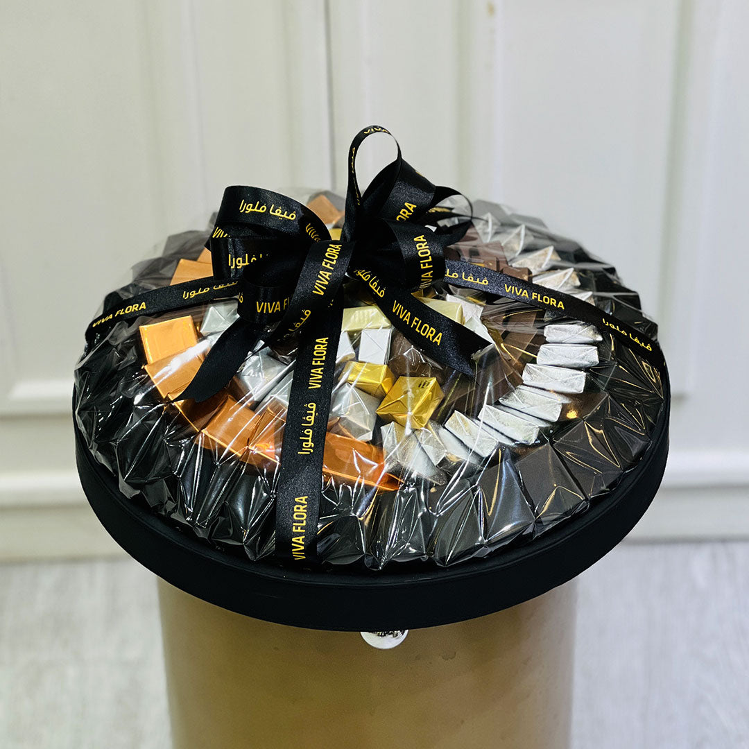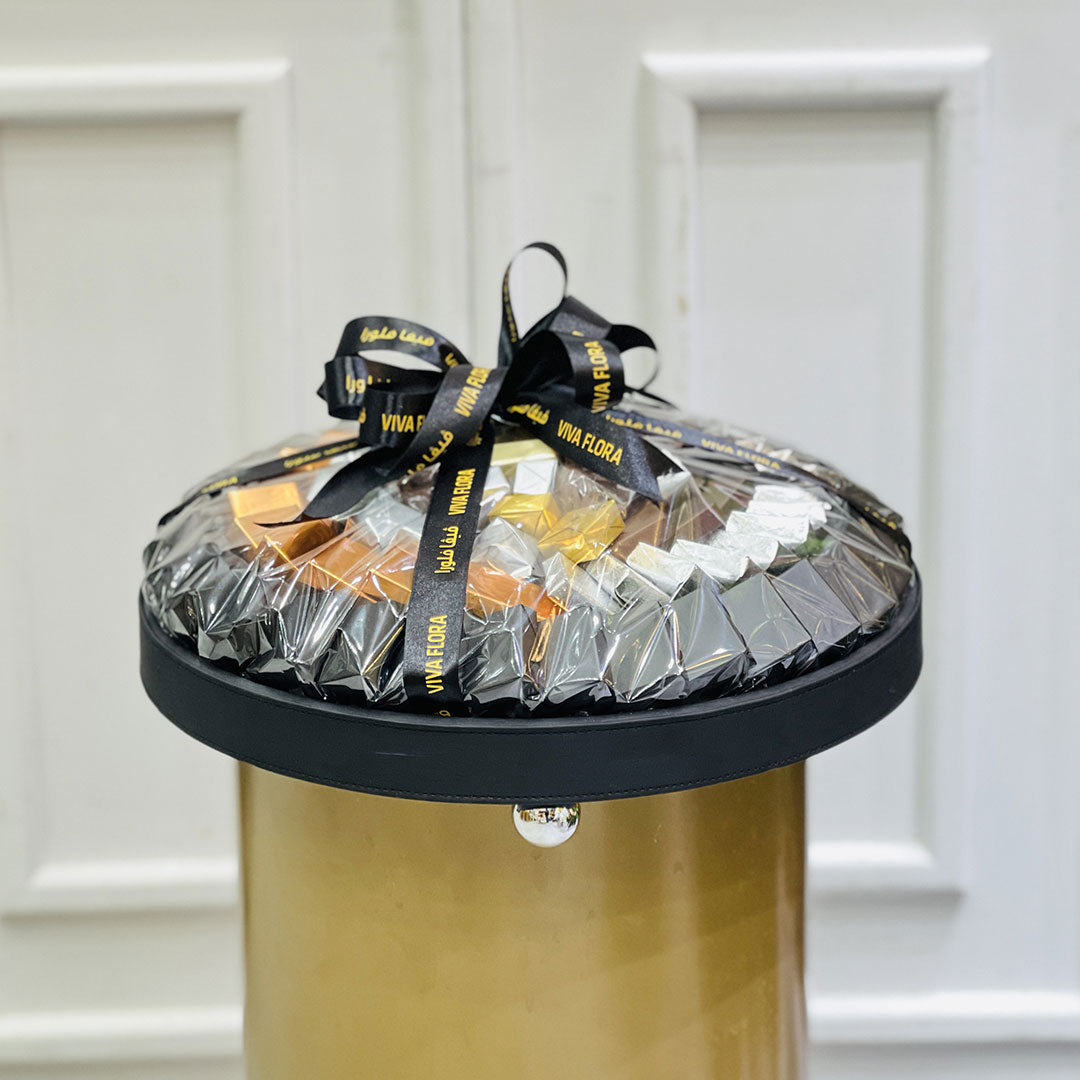 Treat yourself or delight a loved one with our luxurious assorted premium chocolates in an elegant Black Leather tray.